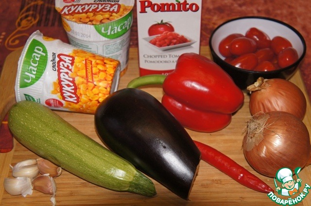 Подготовить продукты. Вместо томатов в собственном соку в банке я использовала измельченные томаты фирмы "Pomito", очень люблю их использовать.