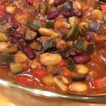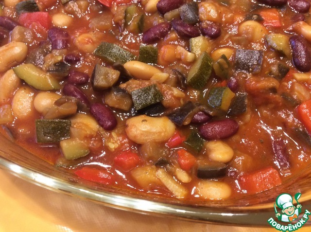 Чили - знаменитое блюдо с очень запутанной историей. Традиционно считается, что похлебка chile con carne (то есть «перец с мясом») родилась в Мексике, а оттуда уже перебралась в США и стала там национальным блюдом - в частности, официальным национальным блюдом штата Техас. Но если вы будете путешествовать по Мексике, то нигде не найдете никакого чили - ни КОН, ни СИН ("без") карне. Классический чили (который "КОН") наполовину состоит из мяса. Но вторая-то половина - овощи! И если ее, эту овощную половину, "усилить" и правильно сварить, подкрепив специями и хорошим маслом, получится просто объедение, ничем не уступающее чили из говядины. На сайте уже есть рецепт чили син карне (http://www.povareno k.ru/recipes/show/81 762/ Его выставила Хироко), но у Наташи блюдо приготовлено, как второе, горячее, а чили - это все-таки суп... очень густой, но суп. По крайней мере в США его подают именно в этом качестве.