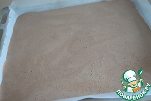 Выливаем массу на стандартный ( 32*42 см ) противень, застеленный бумагой для выпечки.