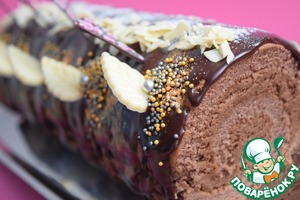 Я хорошо нагрела сливки, добавила поломанный шоколад и перемешала до однородности. Полила этой глазурью рулет и украсила готовым декором. Вы можете украсить по-своему - любая фантазия только приветствуется. -