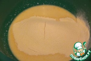 Добавляем сахар, дрожжи, желток перемешиваем. -