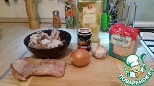 Ингредиенты для «Ризотто с чернилами каракатицы и морепродуктами»: