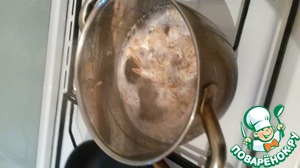 Постоянно держим средний огонь. Бульон к этому времени уже готов, а потому его надо процедить и оставить стоять рядышком на плите. -