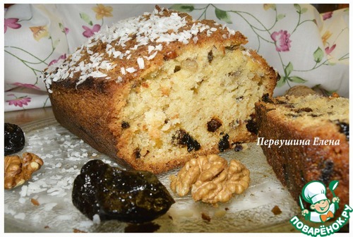 Рецепт «Ореховый кекс с черносливом и кокосовой стружкой»: