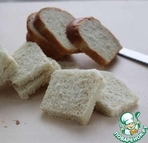 Нарежьте белый хлеб ломтиками, срежьте корки.