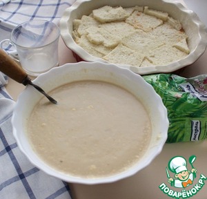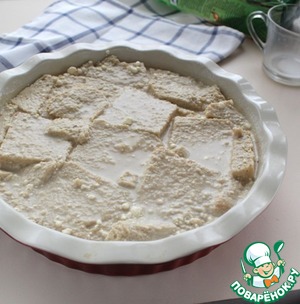 Влейте смесь в форму и оставьте на 5-7 минут, чтобы хлеб пропитался
