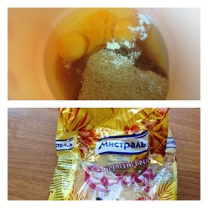 Яйца, ванилин и сахар 1 стакан, взбить.