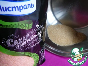 Готовим карамельный соус. Насыпаем коричневый сахар в кастрюльку и плавим его на небольшом огне до состояния карамели.