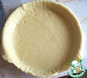 Достаем тесто из морозилки, быстро раскатываем в тонкий лист, накрываем форму листом теста. (Перед этим покрываем дно формы вырезанным кружком пергамента)Форму маслом НЕ смазывать, потому что тесто и так масляное.