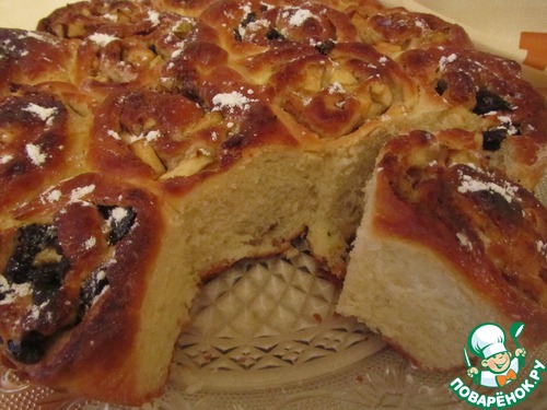 Этот пирог легко разделяется на булочки, поэтому его удобно кушать.