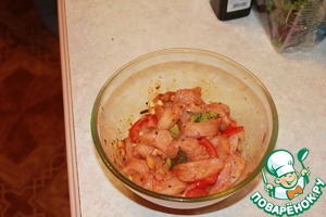 Соус добавляем к курице перемешиваем. Если есть время, даем промариноваться минут 30, а если времени мало можно сразу приступать к обжарке.