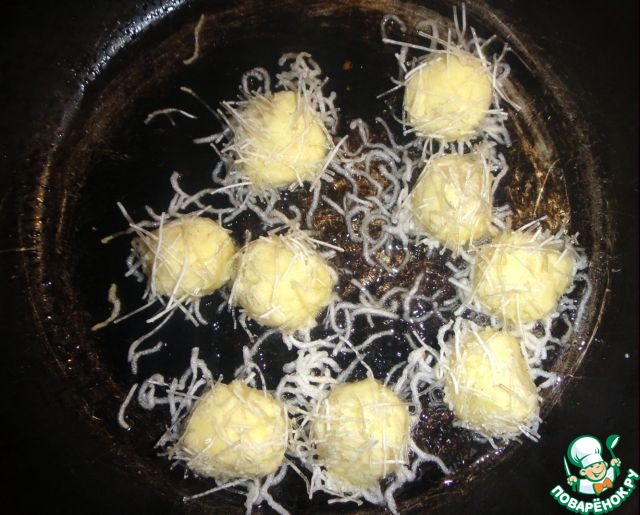 В небольшой глубокой сковороде хорошо разогреть масло и обжарить шарики до золотистой корочки.