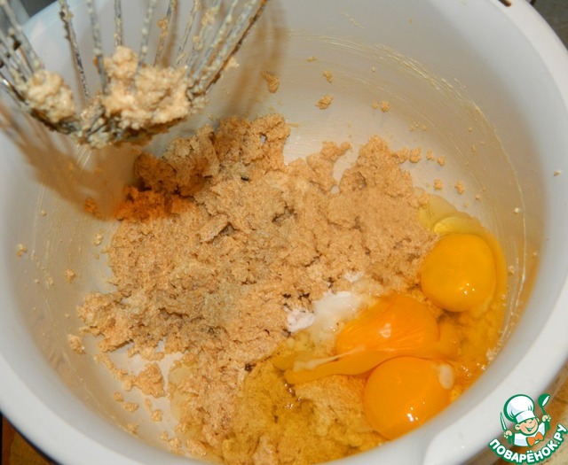 Добавить яйца, соду, ванилин.