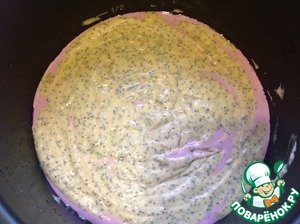 • Добавить растопленое и остывшее масло и мак, взбить. Добавить разрыхлитель и муку, быстро взбить.