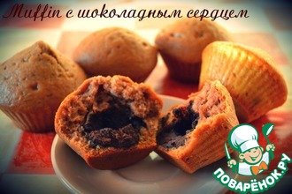 Существует масса рецептов американского Маффин... в этом рецепте мне нравится тесто - легкое (без сливочного масла) и пышное. Главная же изюминка - сердце из черного шоколада. Уверена, маффин понравится всем любителям сладкого и детям :)