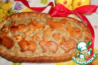 Картофельно-мясная начинка в пироге - любимая многими из нас. Приготовленный в праздничном варианте открытый пирог, украшенный пасхальными зайчиками, этот пирог может украсить пасхальный стол. Особенно он хорош в горячем виде.