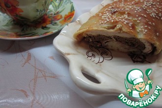 Кулебяка - это закрытый пирог со сложной слоеной начинкой. Попробуйте, очень ароматная кулебяка со слоеной начинкой из нескольких видов мяса.