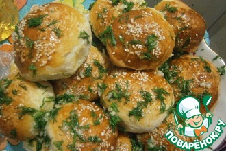 Ингредиенты: Вода Соль Сахар Масло подсолнечное Мука пшеничная Дрожжи Желток яичный Кунжут Чеснок Зелень