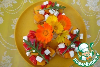Ингредиенты: Тыква Перец болгарский Фетаки Хлеб Масло оливковое Соль Приправа