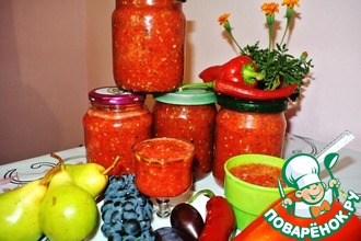 Аджика. Точнее, адаптированный вариант с сохранением максимальной аутентичности. Неплохо зарекомендовал себя на фоне болгаро-греко-молдав ско-еврейских и др. кулинарных традиций, присущих Одессе... Пострадавших в ходе эксперимента нет. Прост в изготовлении, универсален, можно использовать не только как приправу к блюдам, но и как соус приемлемой остроты. В сочетании с копченым салом дает устойчивое послевкусие, приводящее к мысли, что жизнь удалась...