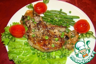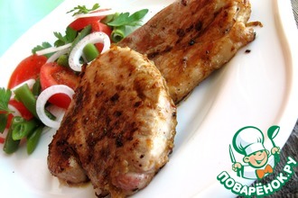 Приготовьте вкусный, сочный свиной стейк. Готовить мясо на косточке несложно, для начала нужно выбрать на прилавке самые красивые кусочки стейка. Затем мясо нужно замариновать в травах или специях, в зависимости от рецепта. Также это блюдо отлично подойдет для романтического вечера. Это блюдо настолько легкое, что его может приготовить каждый. Желательно стейк жарить на сковороде для гриля, но у меня, к сожалению, не оказалось ее под рукой. Стейк подают с овощным соусом и любым легким салатом, например, авокадо с креветками. Гарнир к стейку лучше приготовить из отварных или слегка поджаренных овощей. Украсить блюдо можно на свое усмотрение: зеленью или сделать украшения из овощей.