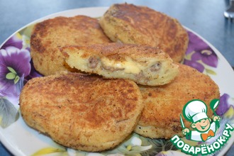 Зразы очень любит мой муж, но так сложилось, что я никогда ему их не готовила. И вот сегодня, 23 февраля я решила порадовать своего любимого. Получились у меня вот такие праздничные зразы с сюрпризом. Мой муж был в полном восторге и очень просил готовить их по-чаще.