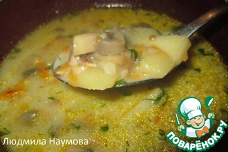 Очень мы любим грибы и сегодня у нас на обед густой, насыщенный суп с шампиньонами и кукурузной мукой!