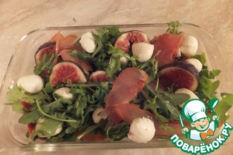 Ингредиенты: Рукола Балык Сыр мягкий Инжир Масло оливковое Соль