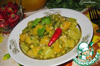 Простое блюдо из сезонных овощей на каждый день. Идеальное сочетание тыквы, цуккини, зеленого горошка с ароматными травами и специями.