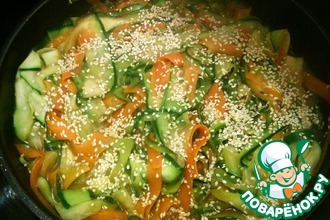 Вегетарианская лапша из цуккини и морковки с кунжутом, с оттенком азиатской кухни.
