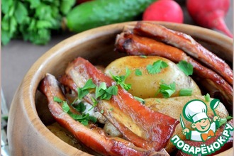 Молодой картофель с копчеными свиными ребрышками