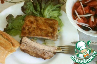 Сегодня опять хочу вам предложить запеченное мясо, на этот раз ребрышки. Рецепт увидела вчера в кулинарной передаче, и он меня заинтересовал способом приготовления, при котором мы избавляемся от ненужного жира, но мясо тем не менее оказывается очень сочным. А также бонусом является салат из помидор, который таким способом готовится в регионе Мурсии, откуда и его название.