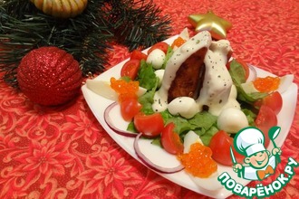 Пикантный салатик из щучьего фарша, помидоров черри и сыра Моцарелла. Уверена, станет приятным сюрпризом для ваших гостей в Новогоднюю ночь.