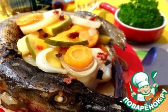 По-истине осеннее блюдо! Ведь не секрет для рыбаков, что осенью начинается "самый клев" на жирных щук! Предлагаю вам приготовить это вкусное и красивое блюдо из свежей щуки, сезонных овощей с добавлением манго, который придает пикантный кисло-сладкий вкус и рыбке и овощам и соку! Рекомендую!