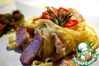 Паста карбонара с острой сальсой
