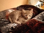 У нас стоит которую неделю жара. Температура воздуха за +30 С, по ночам +25 С. Просто изнемогаем от жары, а как же приходится бедным пушистым хвостикам. Кругом понаставила воды в плошках, в ванной поместила таз с водой, чтобы моя Кукся могла поближе от себя воду найти. Днём спит, преимущественно там, где нет пока солнца.