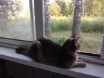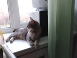 Облюбовала Кукся окно кухонное. Так и пришлось ей освободить место и поставить "вышку дозорную", где она и проводит бОльшее время, даже там и спит.