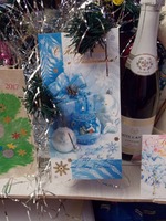 За несколько дней до Нового года ко мне прилетели три открыточки от моих подружек. Первая была от Ирочки ( vlivli ). При чем она сделала сама с огромной любовью. Мой младший даже не понял, что она не покупная. Очень красивая с добрыми пожеланиями.