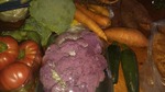 Вчера собрала первую партию помидоров - бычье сердце и помидоры черри! А еще у меня зреет дынька!