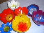 Начнём с простого. Цветы. Экзотические. Всё просто: отрезаем донышки, подрезаем лепестки, закругляем и раскрашиваем. Краски акриловые, ложатся хорошо, сохнут быстро. Получается примерно вот так. Листики изгибаются при нагреве. Думаю, подобные цветы могут найти себе применение в любом интерьере. А теперь о бутылке. Будем из неё делать симпатичную упаковку для сладкого подарка. 1.. Отрезаем бутылку на нужную высоту. 2. Читать далее» |