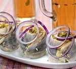 лук - 2 шт грибы мариованые - 1 бан морковка - 1шт майонез - 100гр кетчуп - 100гр Приготовление: Селедку порезать на филе. Филе разрезать на полосочки (с 1 филе 3 полоски). Теперь жарим лук до золотистого цвета. Добавляем морковь. Снимаем со сковороды, охлождаем. Добавляем маринованые грибы (резаные) и майонез. Выложить на полоску из селедки и завернуть в рулетик и заколоть зубочисткой. Сложить плотно в посуду и залить кетчупом разведеным с водой. Читать далее» |