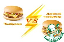 Какой самый популярный продукт фастфуда? Конечно же чизбургер! Он недорогой, вкусный и сытный. А для тех, кто любит посытнее, есть старший брат чизбургера - двойной чизбургер. О них сегодня и пойдет речь. Что же выгоднее два чизбургера или один двойной?