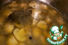 Грибы помыть, большие разрезать на 2-4 части. Все составляющие маринада поместить в кастрюльку и положить грибы.