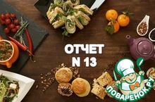 А вот и тринадцатый отчет по рецептам наших замечательных поварят подоспел, встречайте! Сегодня у нас и салат, и горячая закуска, и главное блюдо, и десерт, и заготовка!