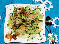 Вкусный, легкий салат с морепродуктами, в стиле средиземноморской кухни. Украсит и праздничный стол, и воскресный семейный ужин.