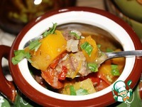 Стьют - это англоязычное название группы блюд сходным с известным всем рагу. Мясо тушится медленно, пропитываясь ароматами овощей, у меня это мускатная тыква, лук, чеснок, вяленые томаты, тушится не просто в бульоне, но и в красном сухом вине. Достойное блюдо во всех отношениях.