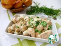 Хочу предложить вариант быстрого ужина или обеда. Куриная грудка с консервированными шампиньонами и молодым зеленым горошком готовится считанные минуты. Можно подавать с любым гарниром. Но и без гарнира блюдо замечательное. Для любителей острого, можно добавить чеснок или острый перец чили.