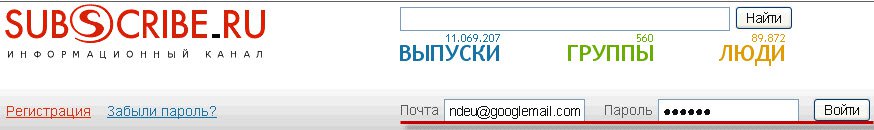 1. Заходим на главную страницу сайта http://subscribe.ru/