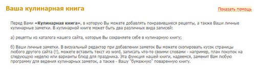 В верхнем правом углу расположена инструкция по пользованию кулинарной книгой.